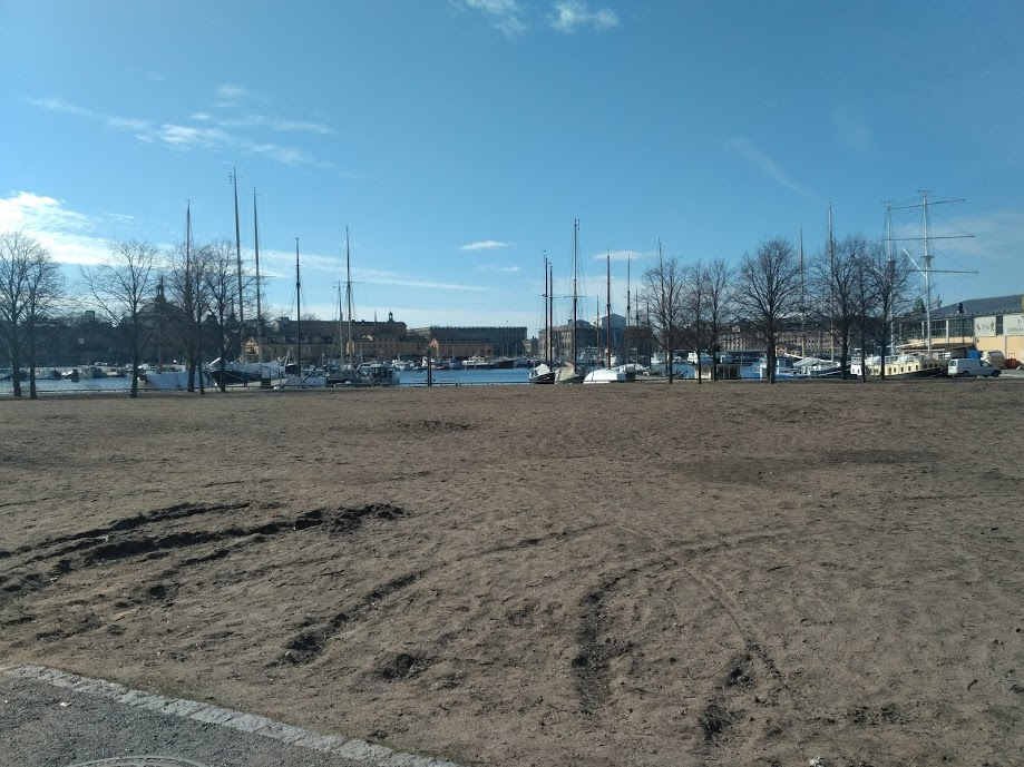 В это время в Стокгольме очень пусто. Нет туристов и травы на газоне.