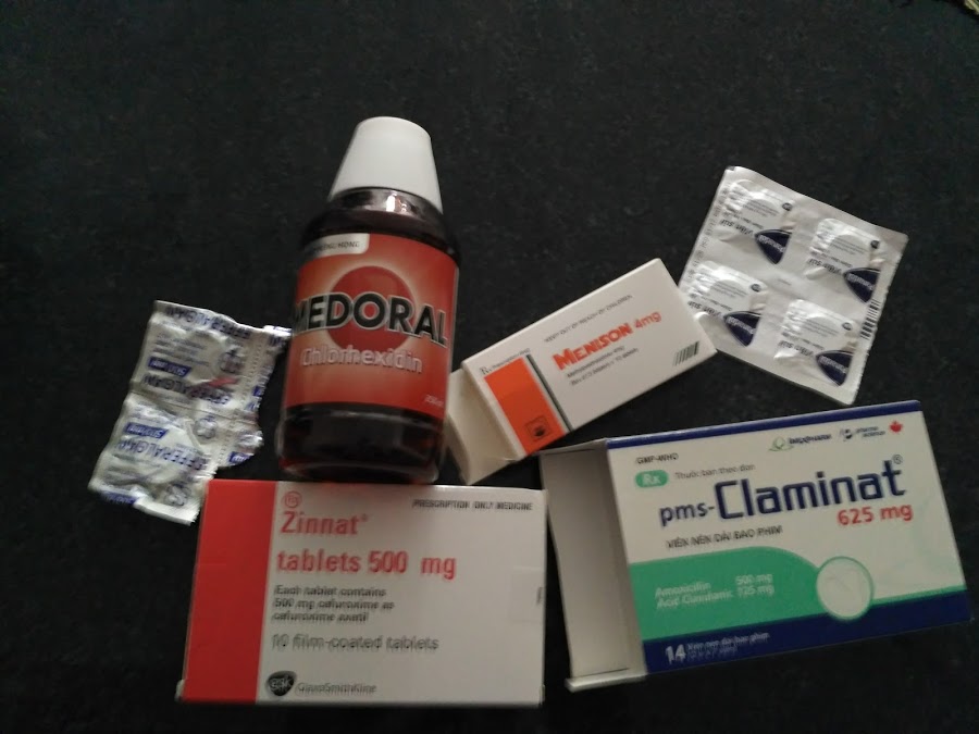 Внутри больница напоминала наши российские: регистратура, очередь, талоны. К счастью, ждать долго не пришлось и заплатив в кассу 100000 VND (~250р) за прием, я отправился в кабинет стоматолога. Врач очень хорошо говорила по-русски и диагностировала пульпит зуба мудрости. Прописав два антибиотика, парацетамол и средство для полоскания полости рта, сказала приходить через 3-5 дней для того, чтобы сделать снимок. По ее словам, лечить восьмерку нет смысла и скорее всего придется вырвать.
