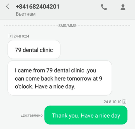 На утро врач написал смс, что уже ушел и предложил прийти на следующий день.