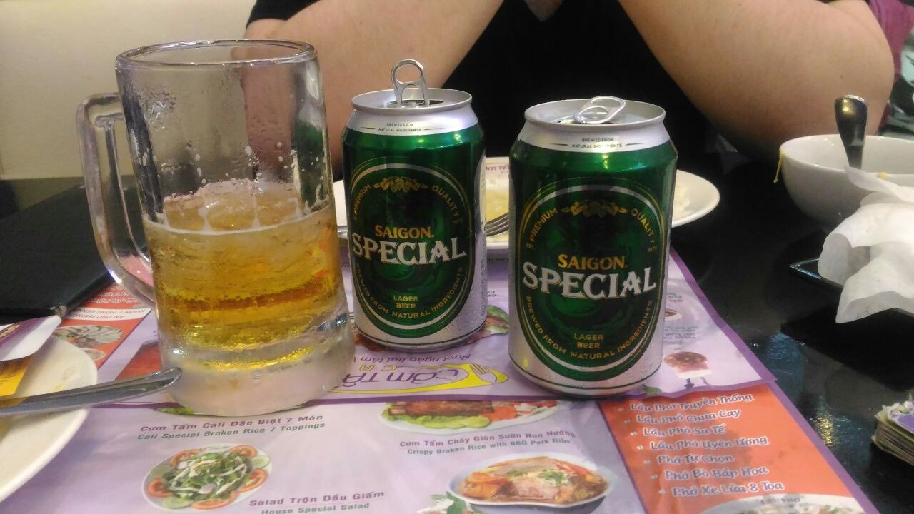 Во всех заведениях во Вьетнаме все холодные напитки подаются со льдом. И, если холодный зеленый чай со льдом не кажется чем-то необычным, то пиво со льдом было небольшим культурным шоком. На фото пиво Saigon – местный аналог балтики 7.