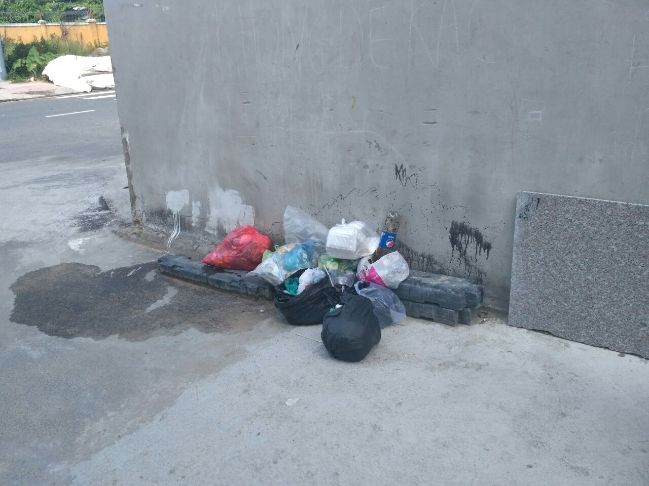 Во Вьетнаме нет мусорных баков, пакеты с мусором складывают аккуратненько у дома, а потом их забирает машина.