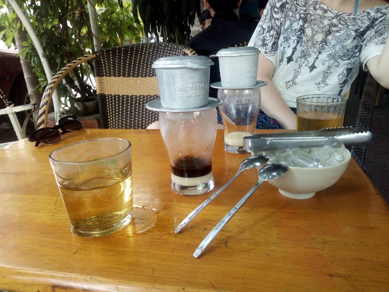 Вьетнамцы считают, что вьетнамский кофе нельзя заваривать традиционным способом из-за его горечи, поэтому они используют специальные алюминивые прессы, где кофе плотно утрамбовывавается и медленно капает прямо в стакан, в котором на дне лежит сгущенное молоко. Конечно же, подается со льдом.